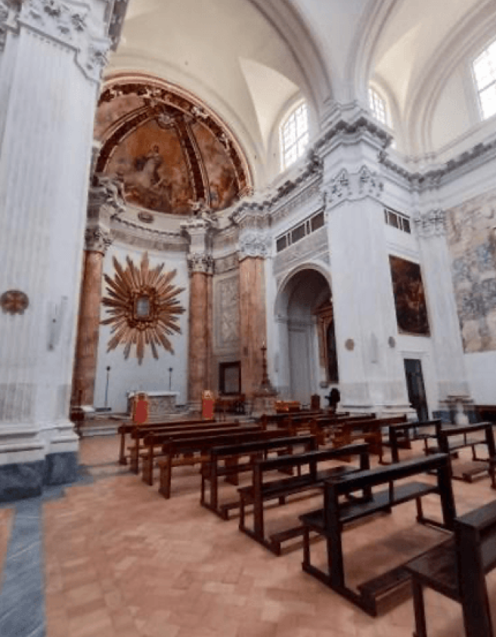 Plautilla Bricci’s Birth of the Virgin is a magnificent altarpiece (3.53m x 2.23m) located in the first chapel on the right of the Church of Santa Maria in Campo Marzio, located in the heart of Rome, very close to the Parliament and Piazza del Pantheon. The most recent studies point to the painter and “architect” Plautilla Bricci (Coppolaro 2023) as the author of the work on the basis of documentation.