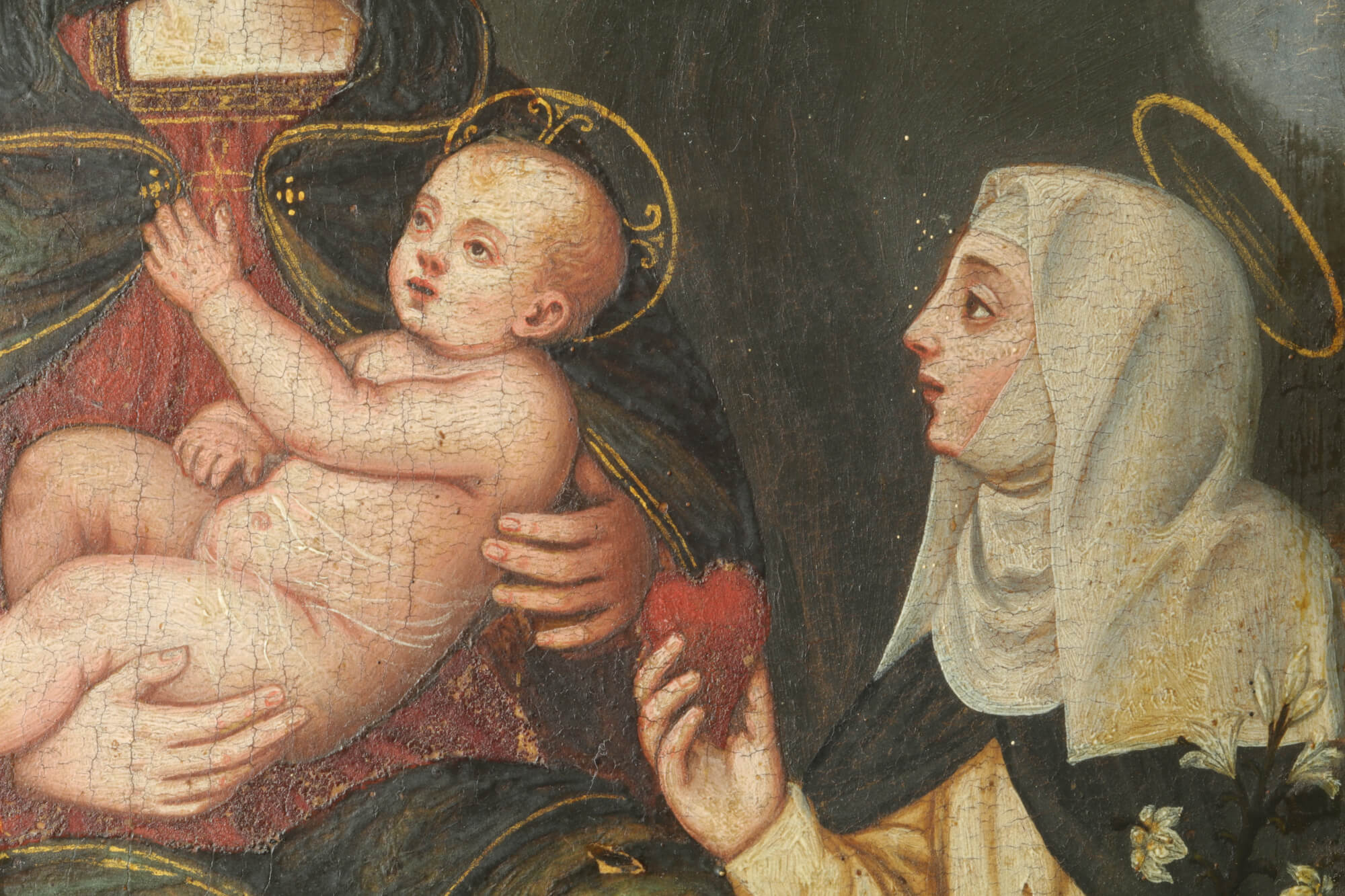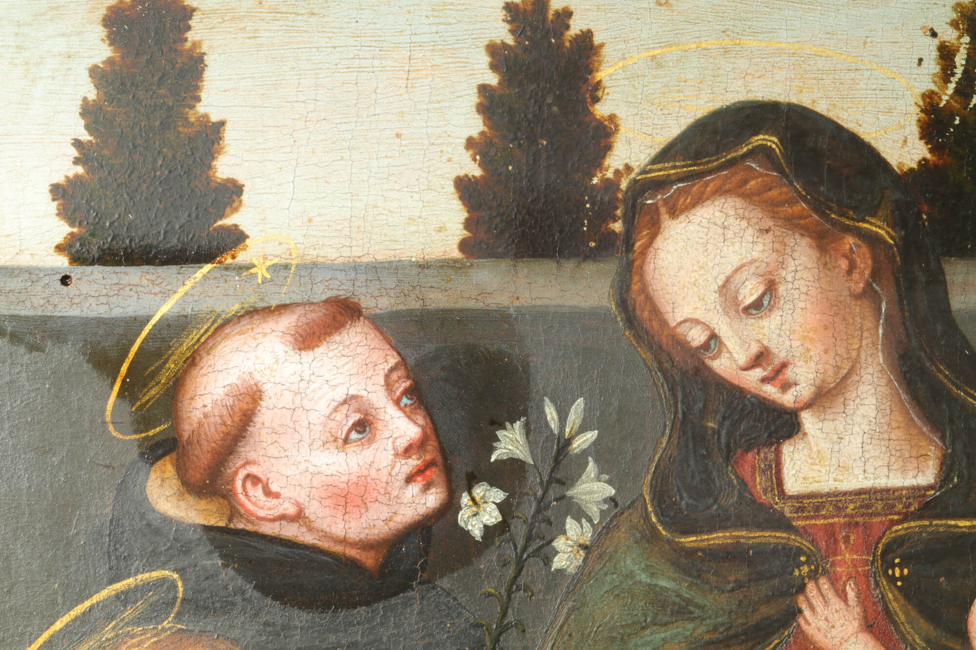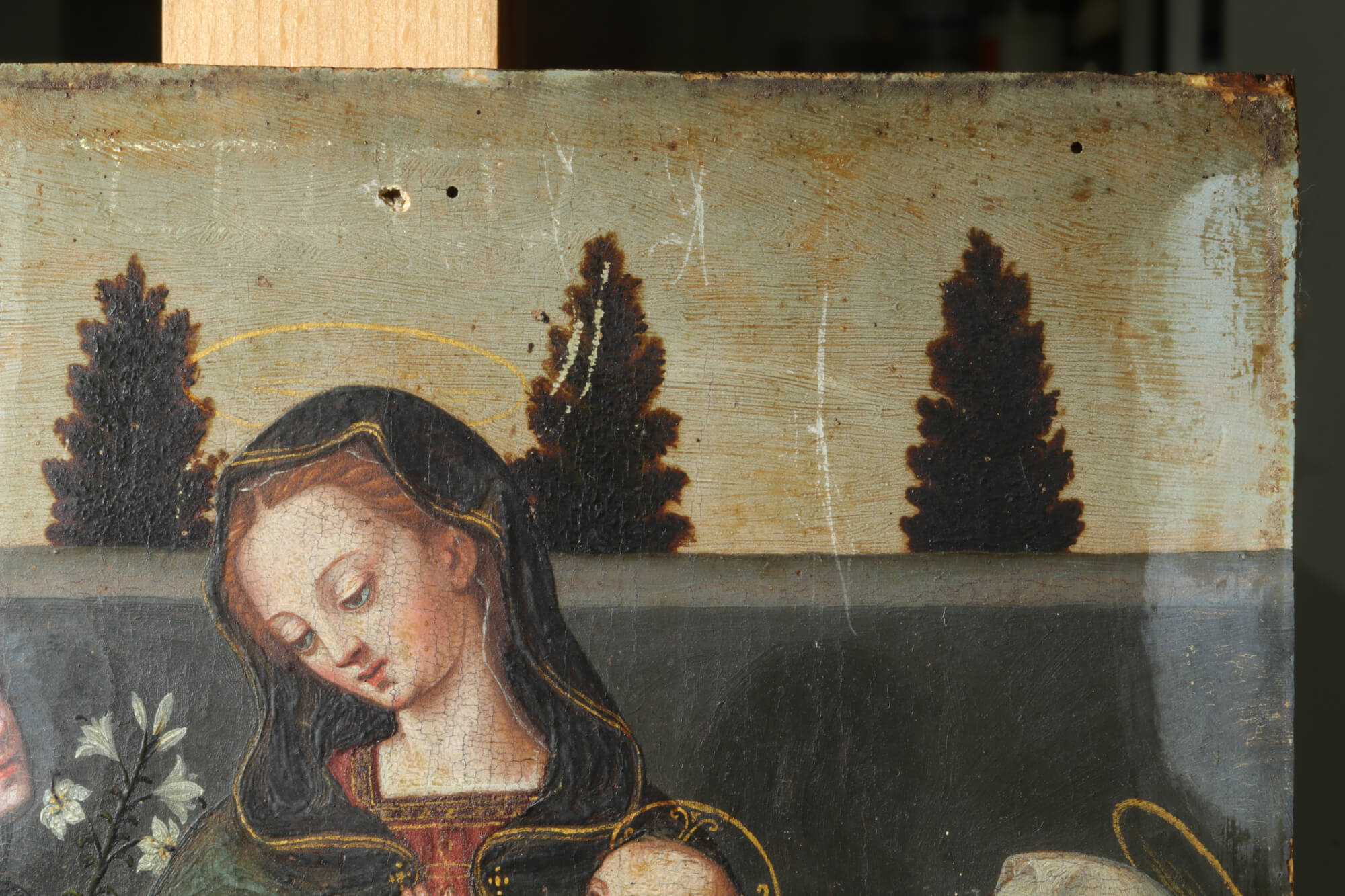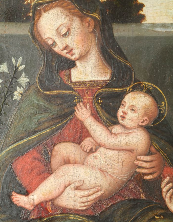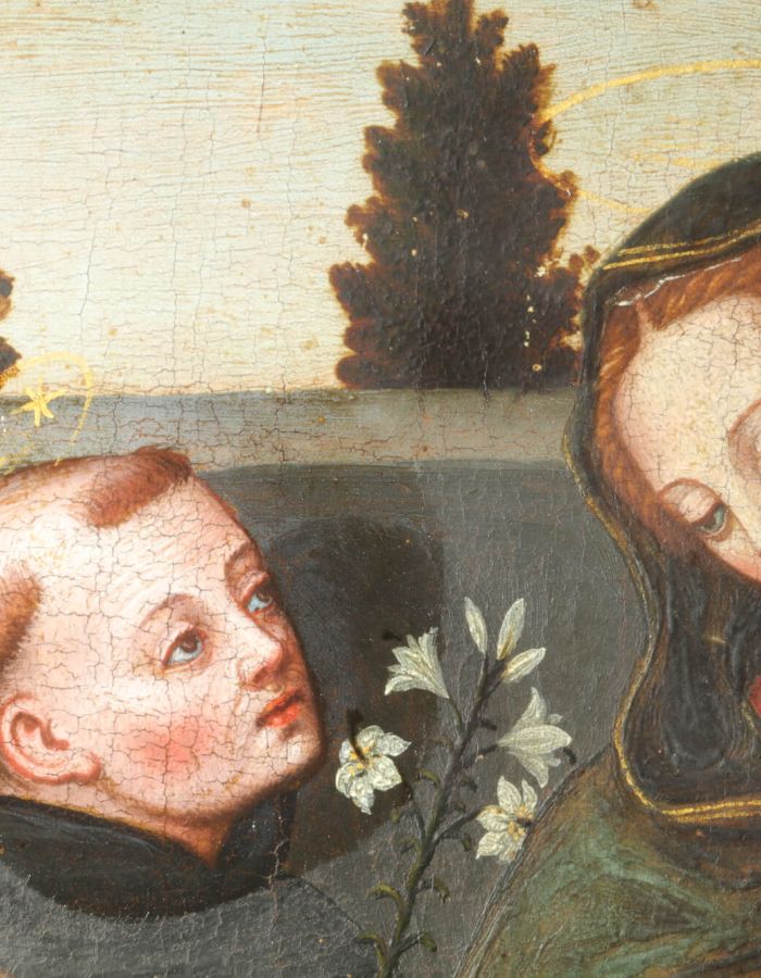 Coinciding with the 500th anniversary of Suor Plautilla Nelli’s birth, Florence’s first recognized female Renaissance artist (1524-1588), the following restoration was planned on a small panel painting of the ‘Madonna and Child with Saint Catherine, Sant’Agnese and Saint Dominique’. Research and restoration by ‘Advanced Restoration’ students under the direction of head professor Dr. Roberta Lapucci of the Lorenzo de’ Medici Institute of Florence, and the ‘technical art’ scientific and chemical study campaign with the collaboration of Trisha Dalke (ex-LDM student in Art Conservation)   (taking her master’s degree in Technical Art at the University of Amsterdam). Other LdM departments, such as Gender Studies, Jewelry Design, Fine Art, Graphics, and Communication, also participated in this project. Leading Nelli scholar Dr. Catherine Turrill Lupi made an important contribution with her research, uncovering new findings on the small panel’s paintings by Plautilla Nelli and her ‘Bottega’ that are coming to light.